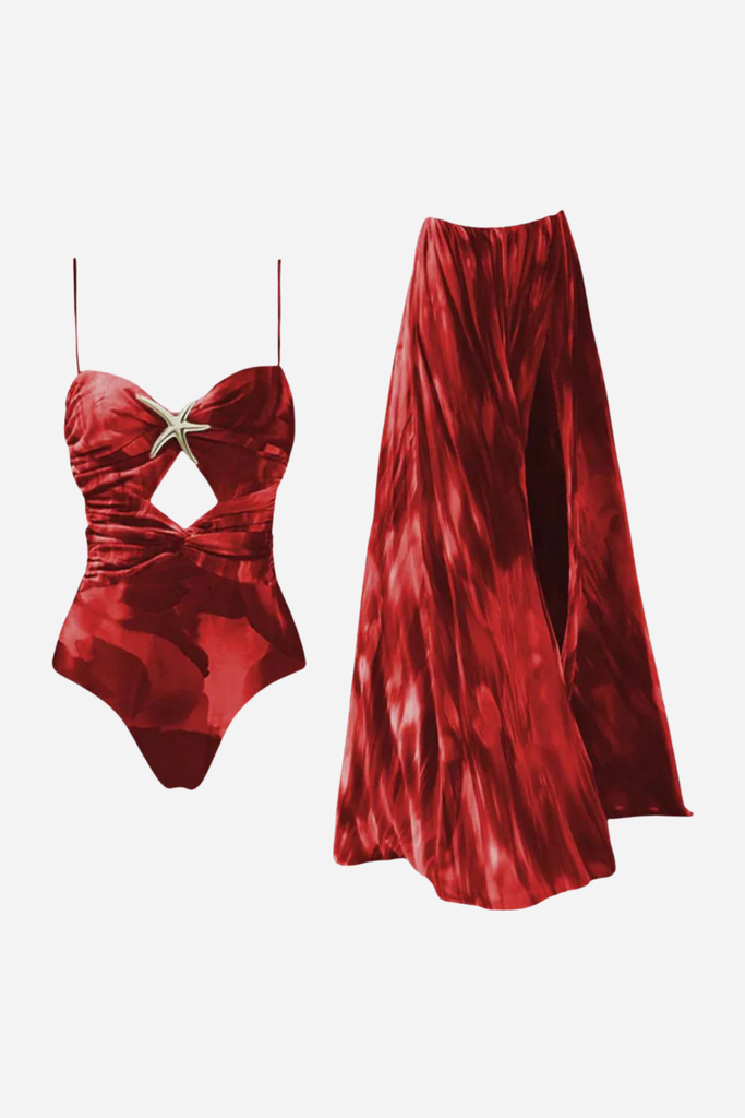 Crimson Tide – One-Piece Swimsuit & Wide-Skirt Set